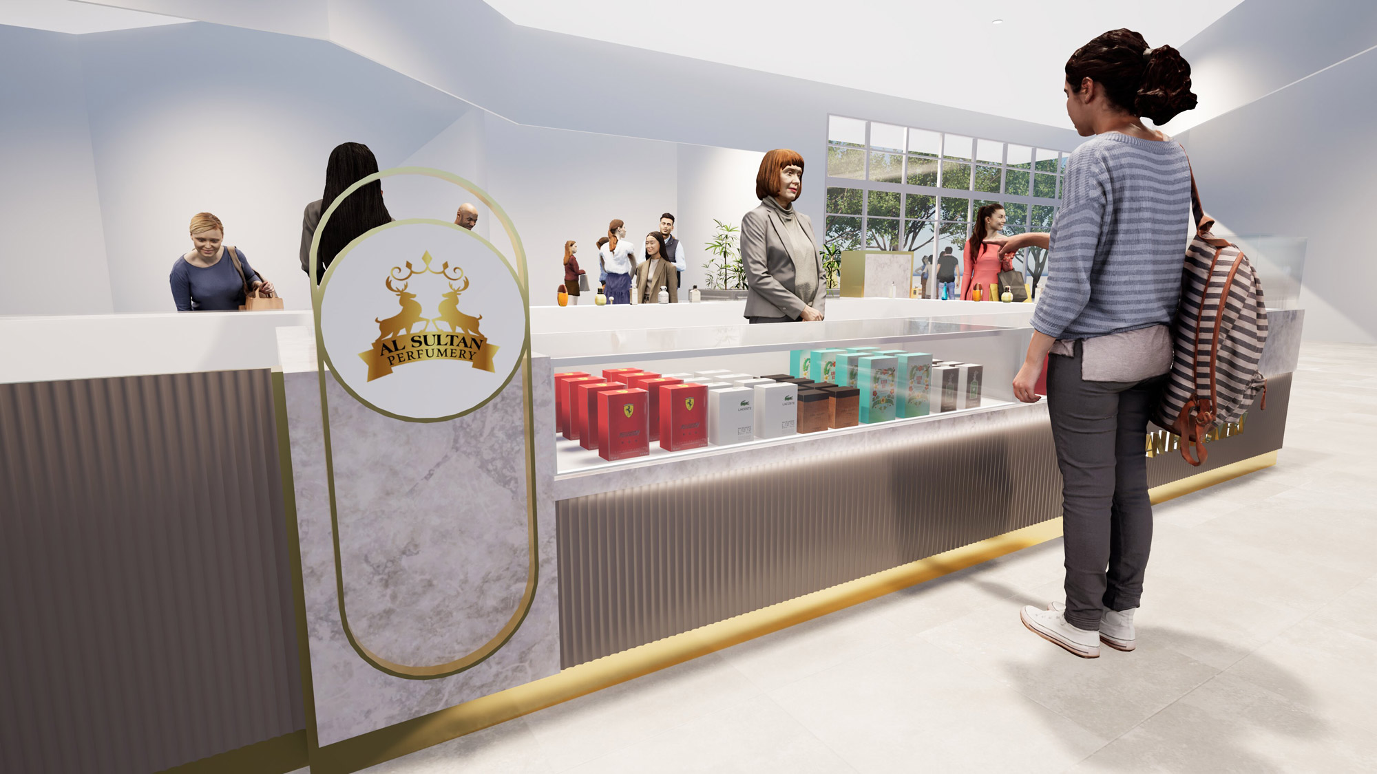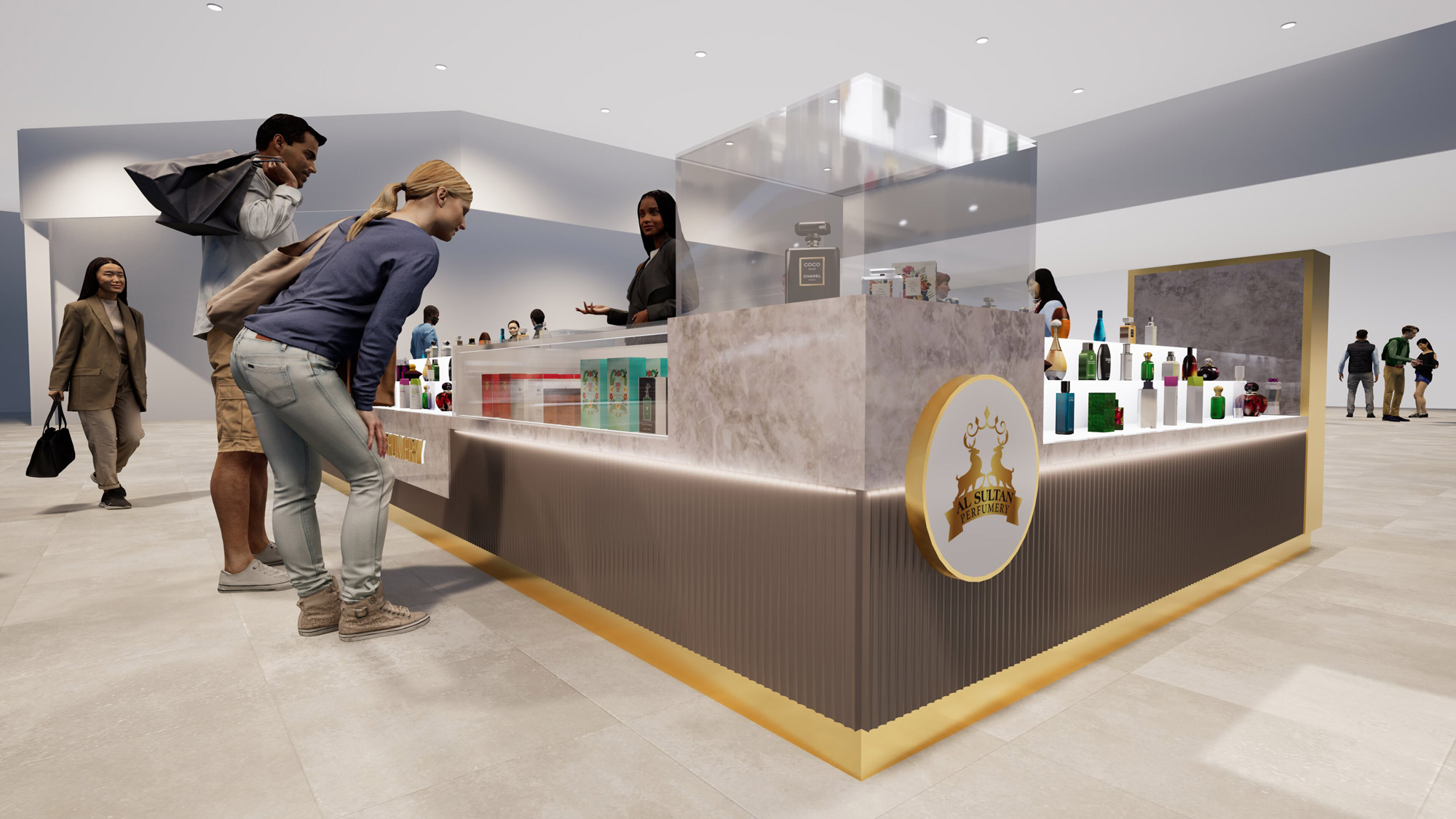 AL SULTAN KIOSK PERFUMERY, SYDNEY RETAIL KIOSK CONCEPT – Sydney, Australia, year, 2024 – Concept design for a kiosk perfumery, 20m2 ← Previous project Next project →