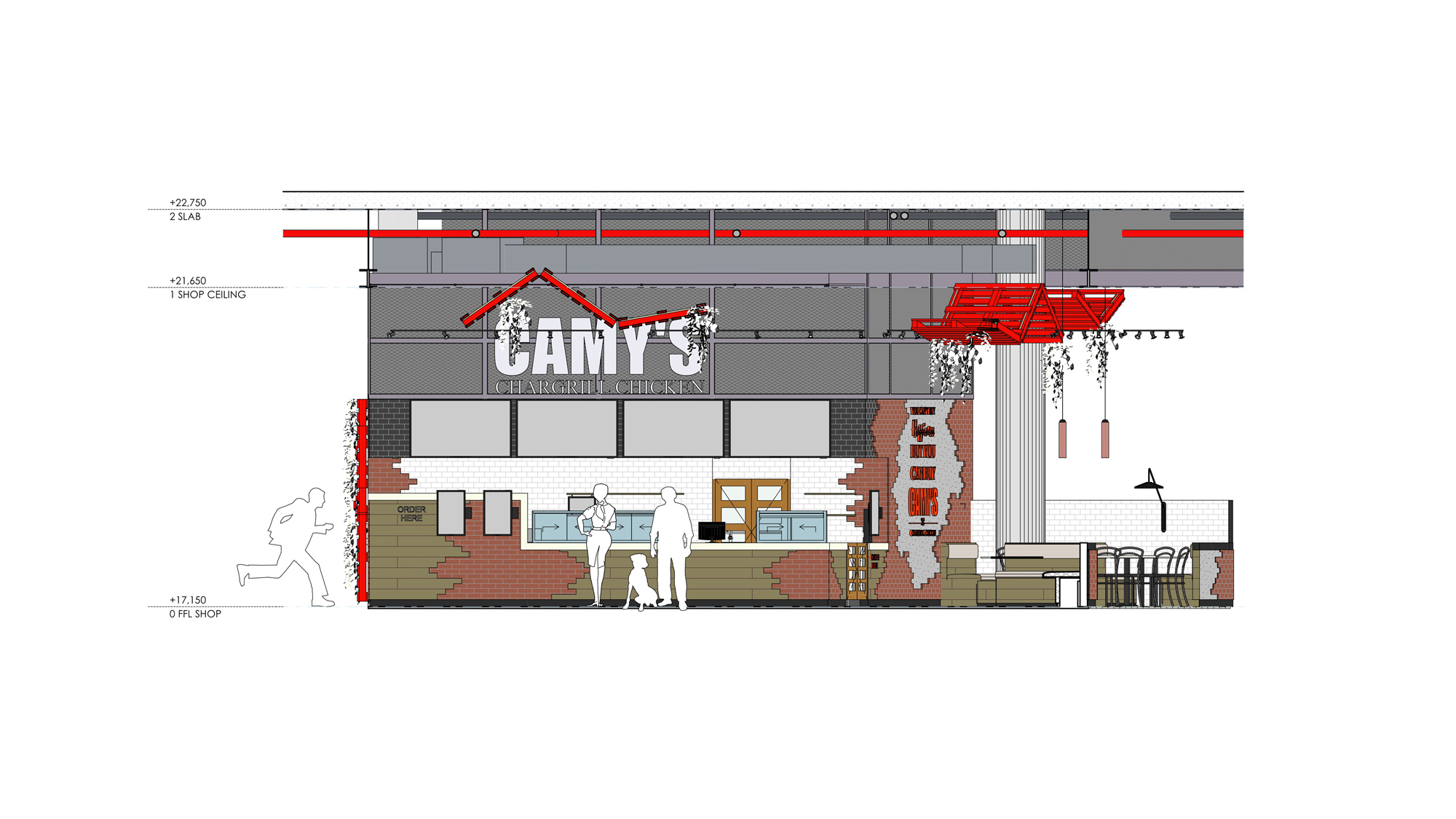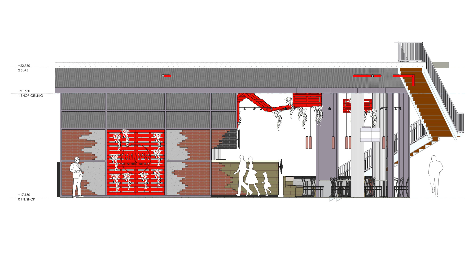 – Interior architecture for a restaurant. 136 m2