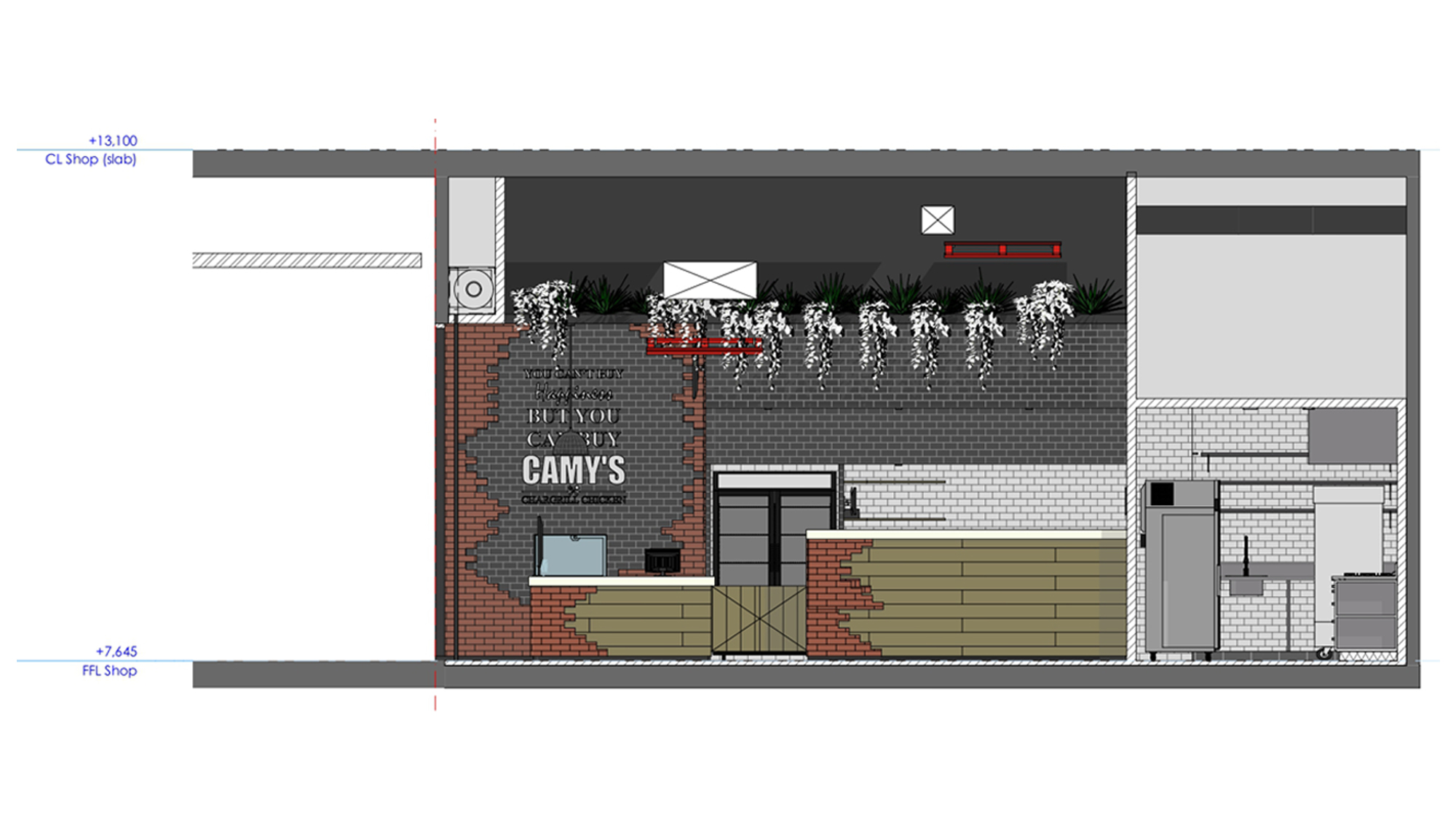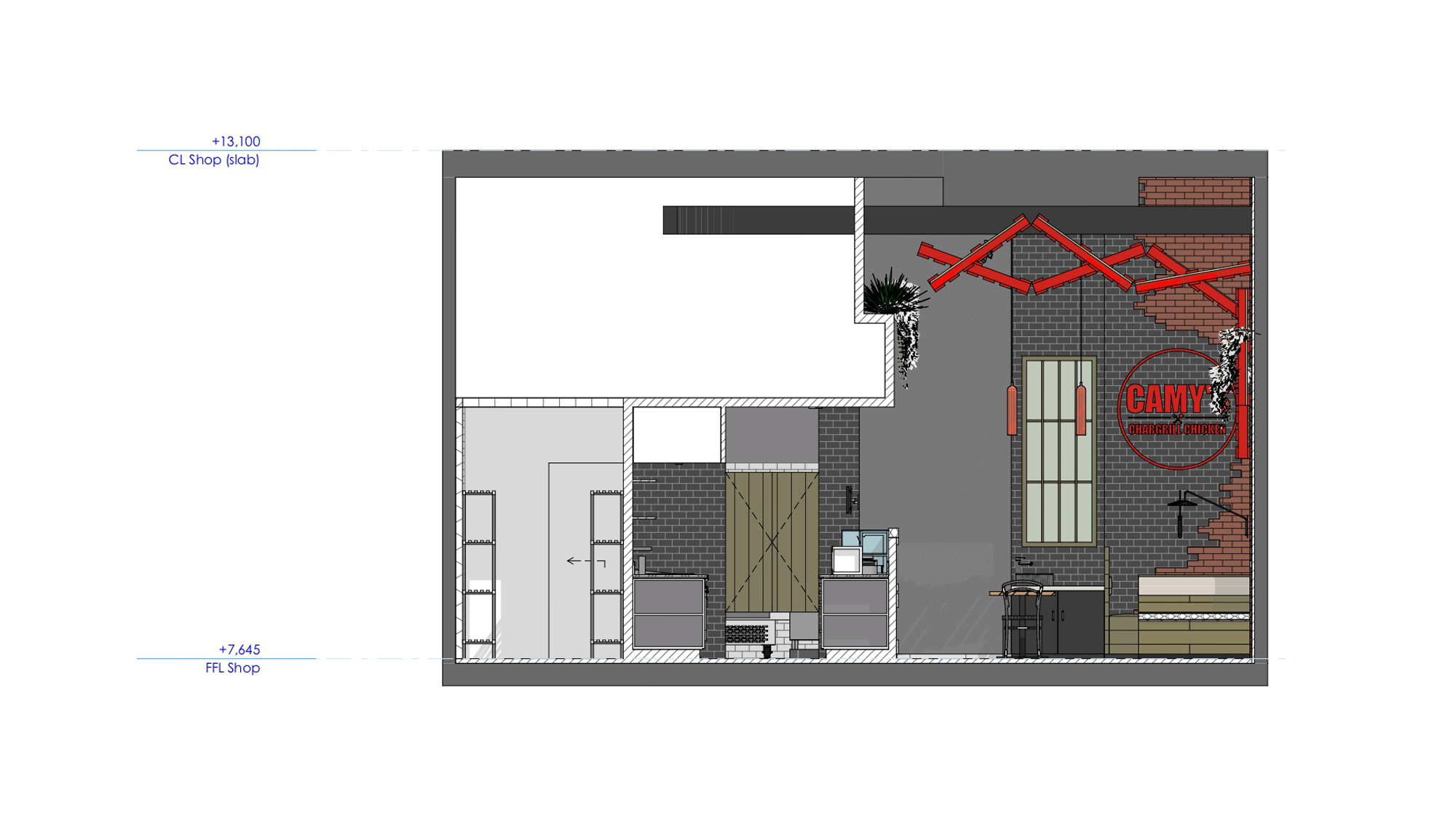 – Interior architecture for a chicken restaurant. 90 m2