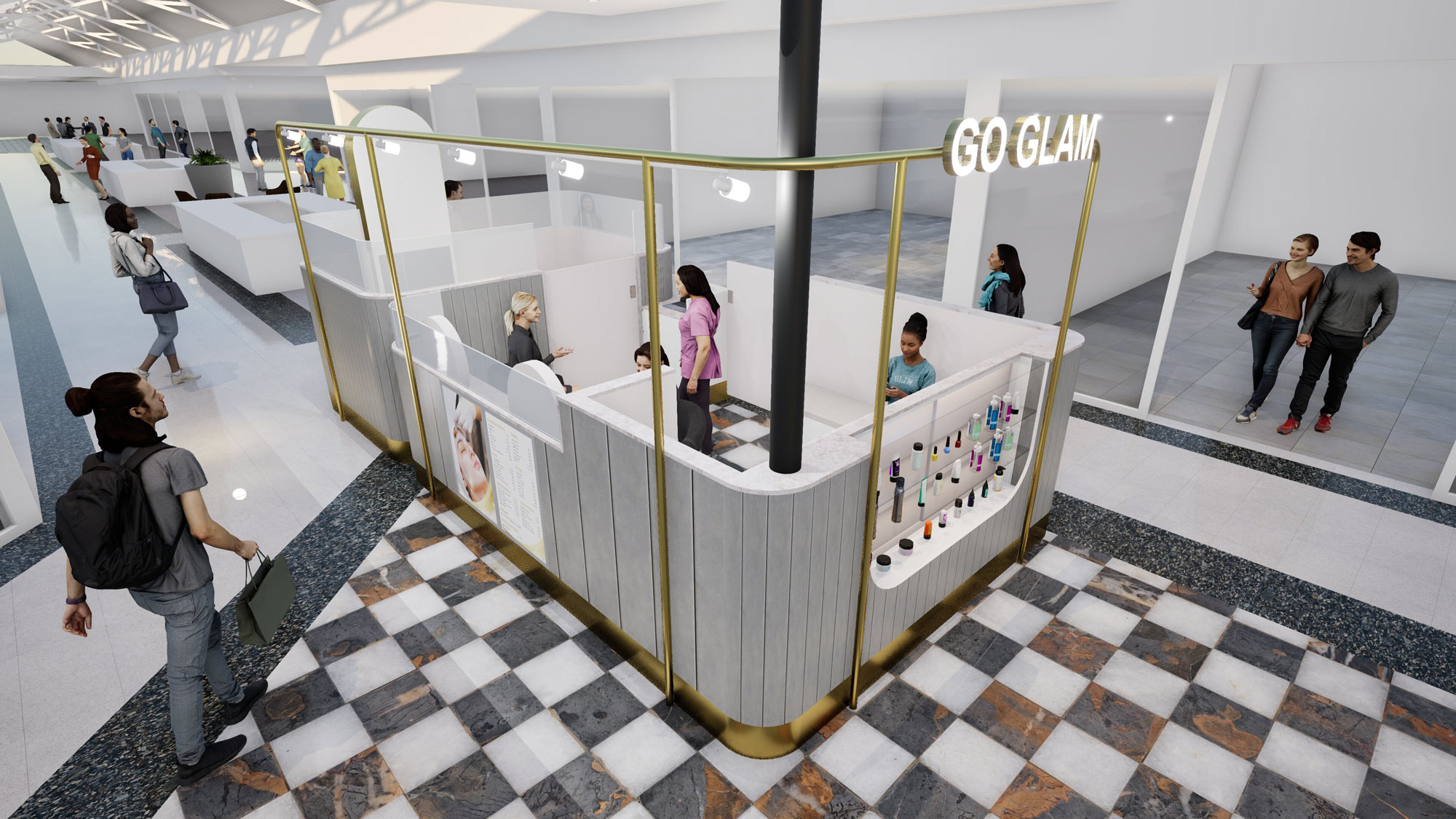 – Cosmetic treatment kiosk design, 18m2
