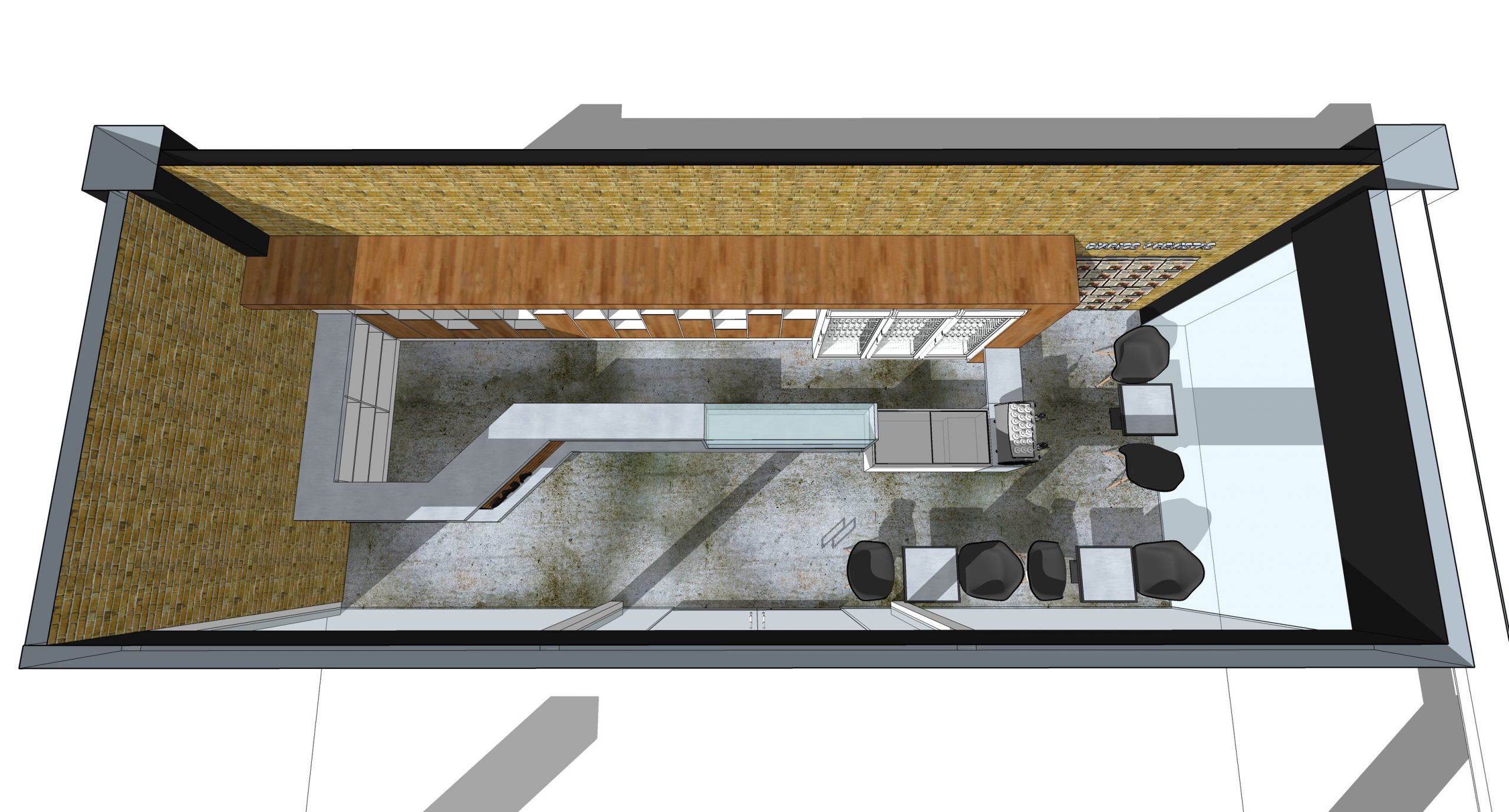 – Retail, cafe 36 m2. Concept 1: Rustic/industrial; Concept 2 Modern/minimal
