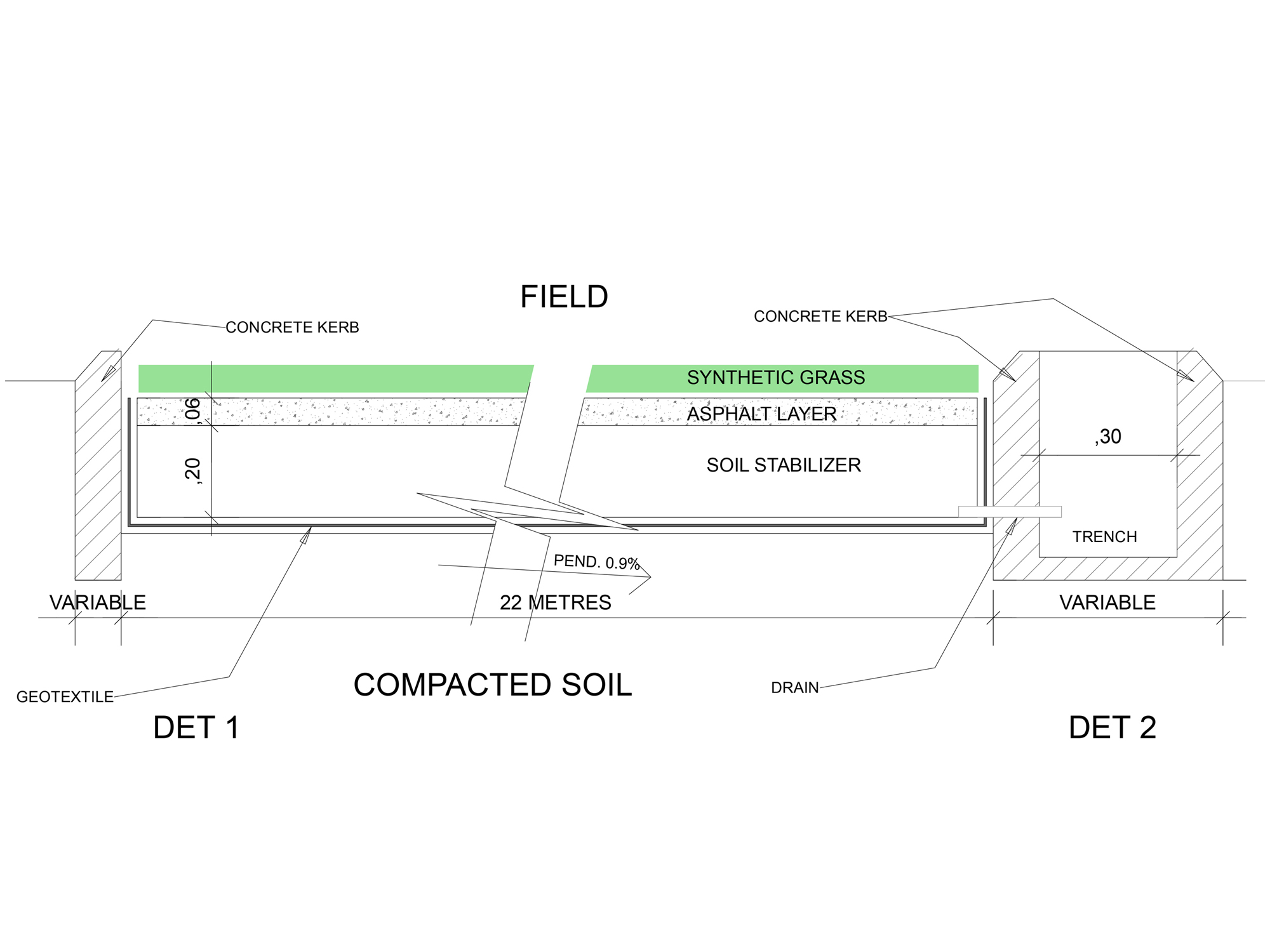 – Architectural design for a spa/wellness building + Soccer 7 a side field, 240 m2.