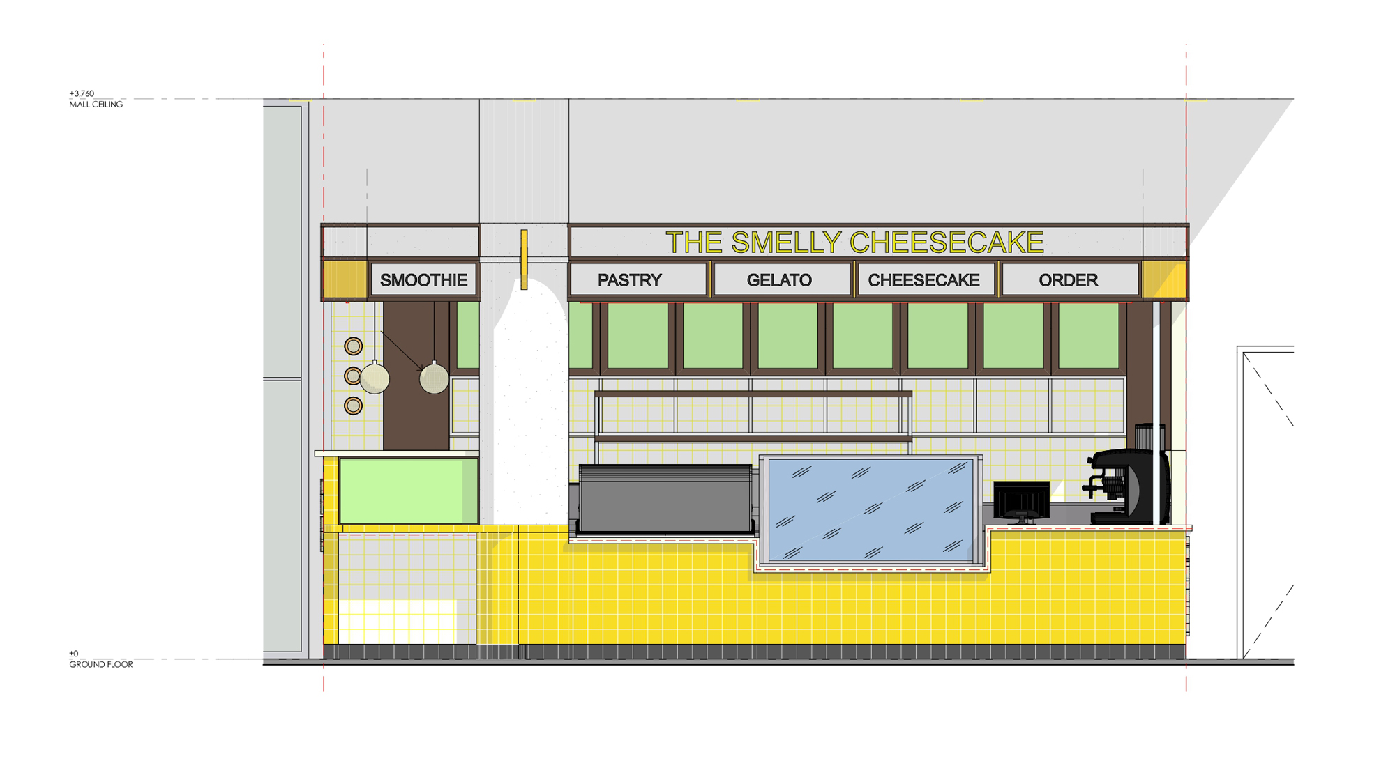 – Interior architecture for a kiosk, takeaway food. 26m2