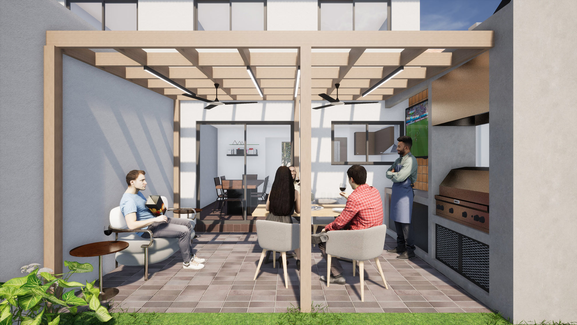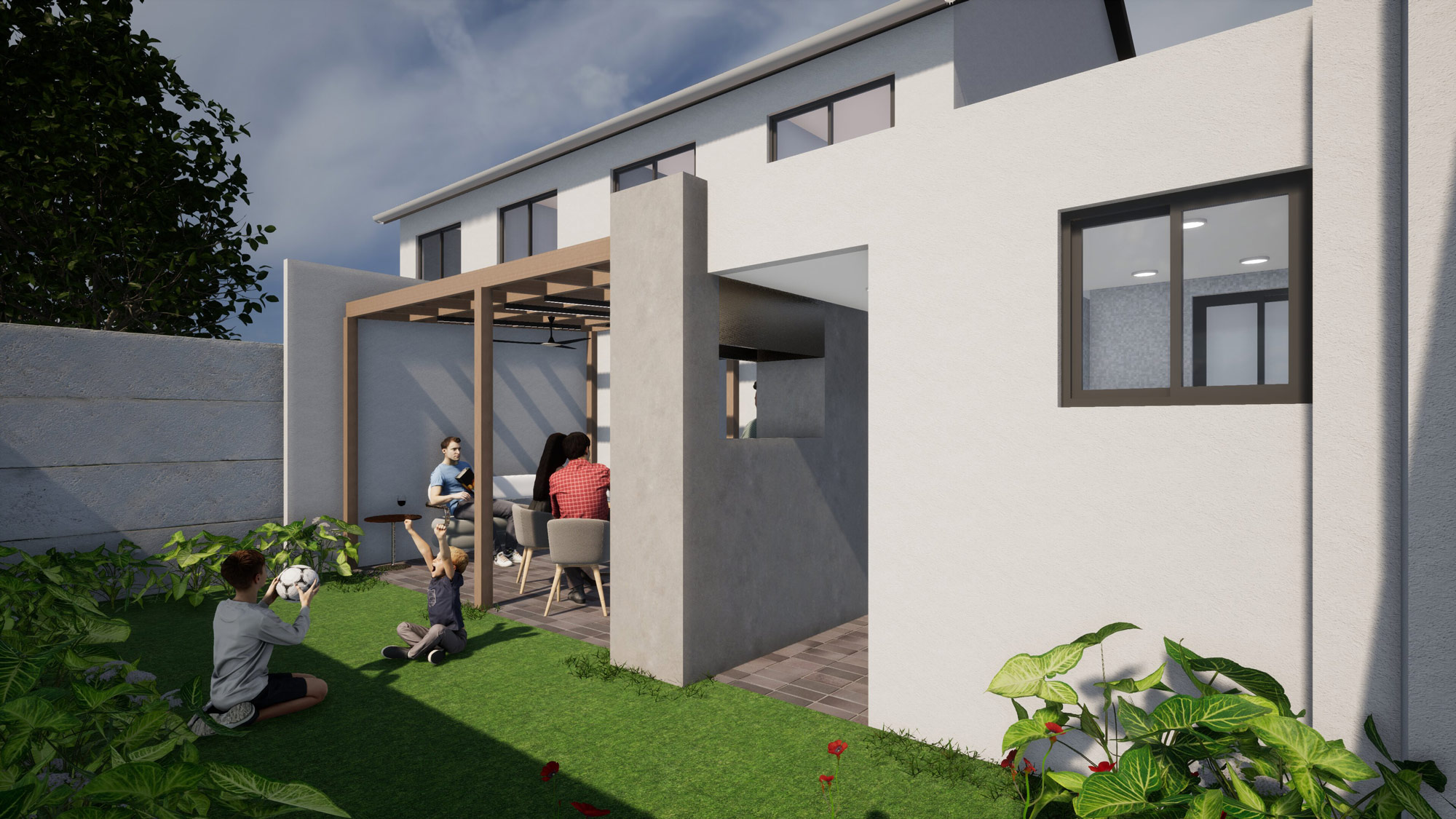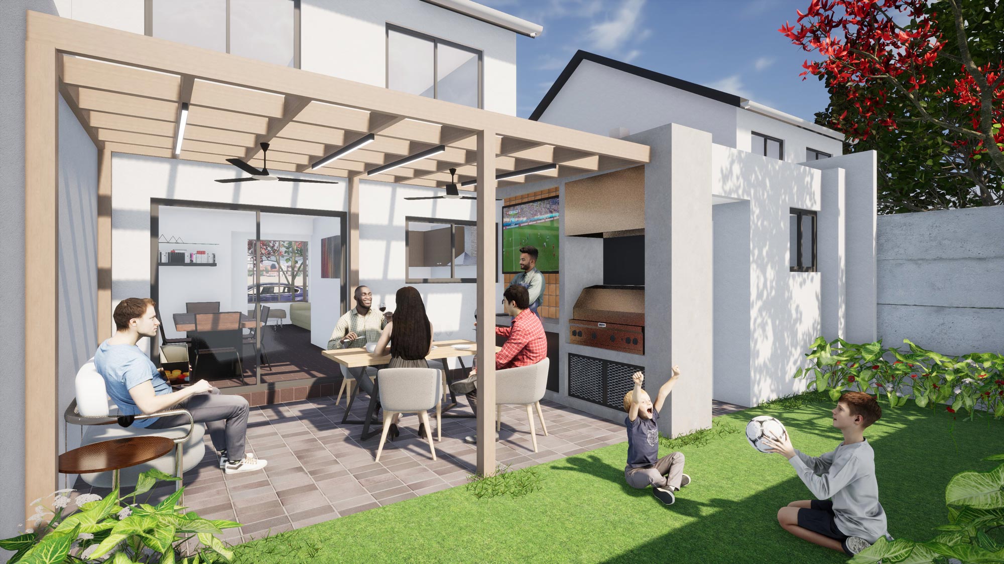 – Townhouse ground floor extension + outdoor pergola structure with BBQ area