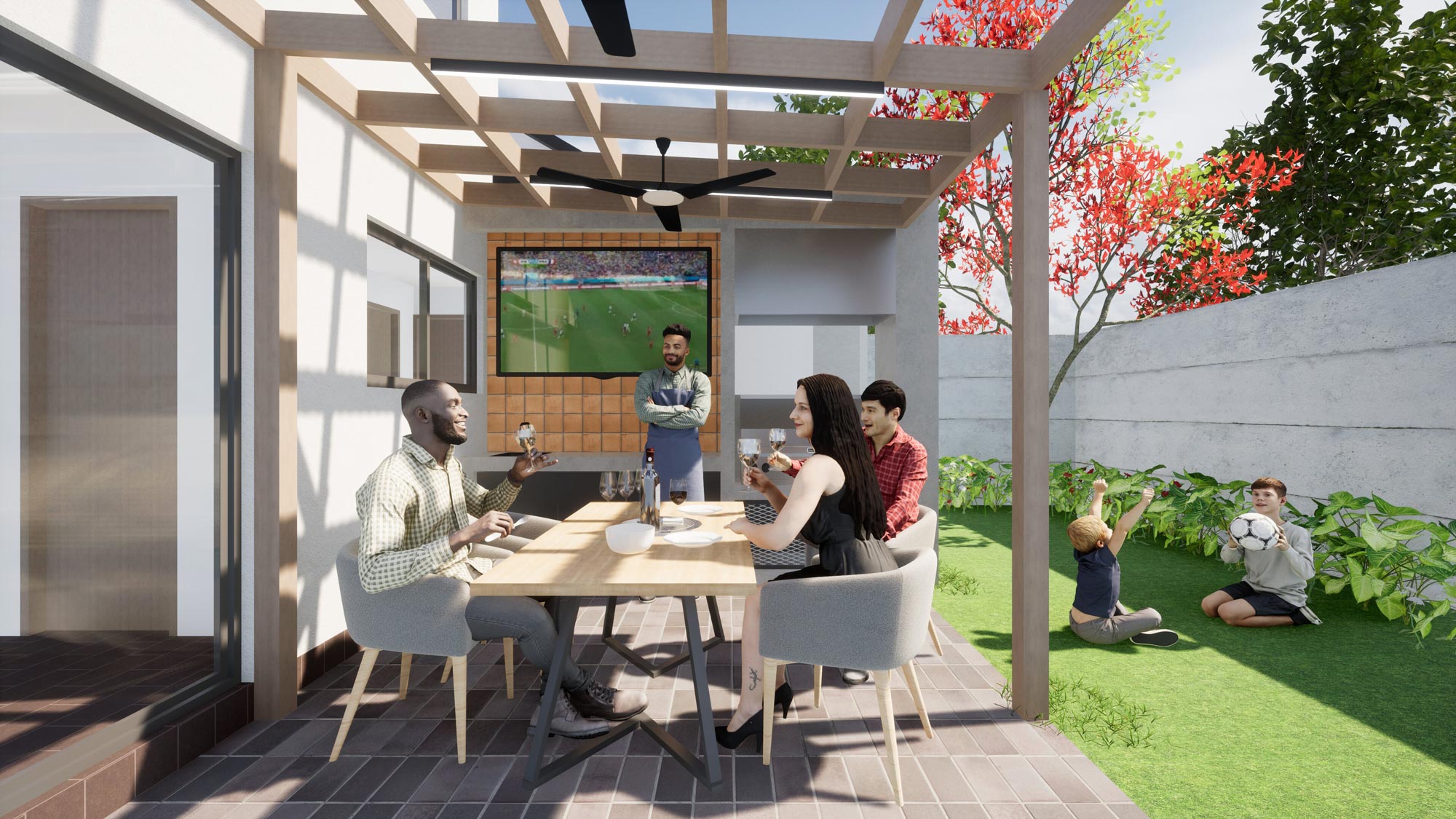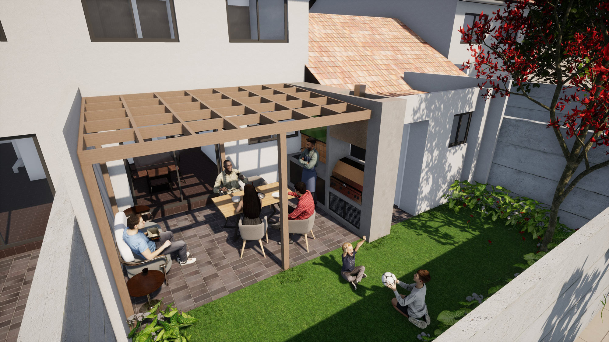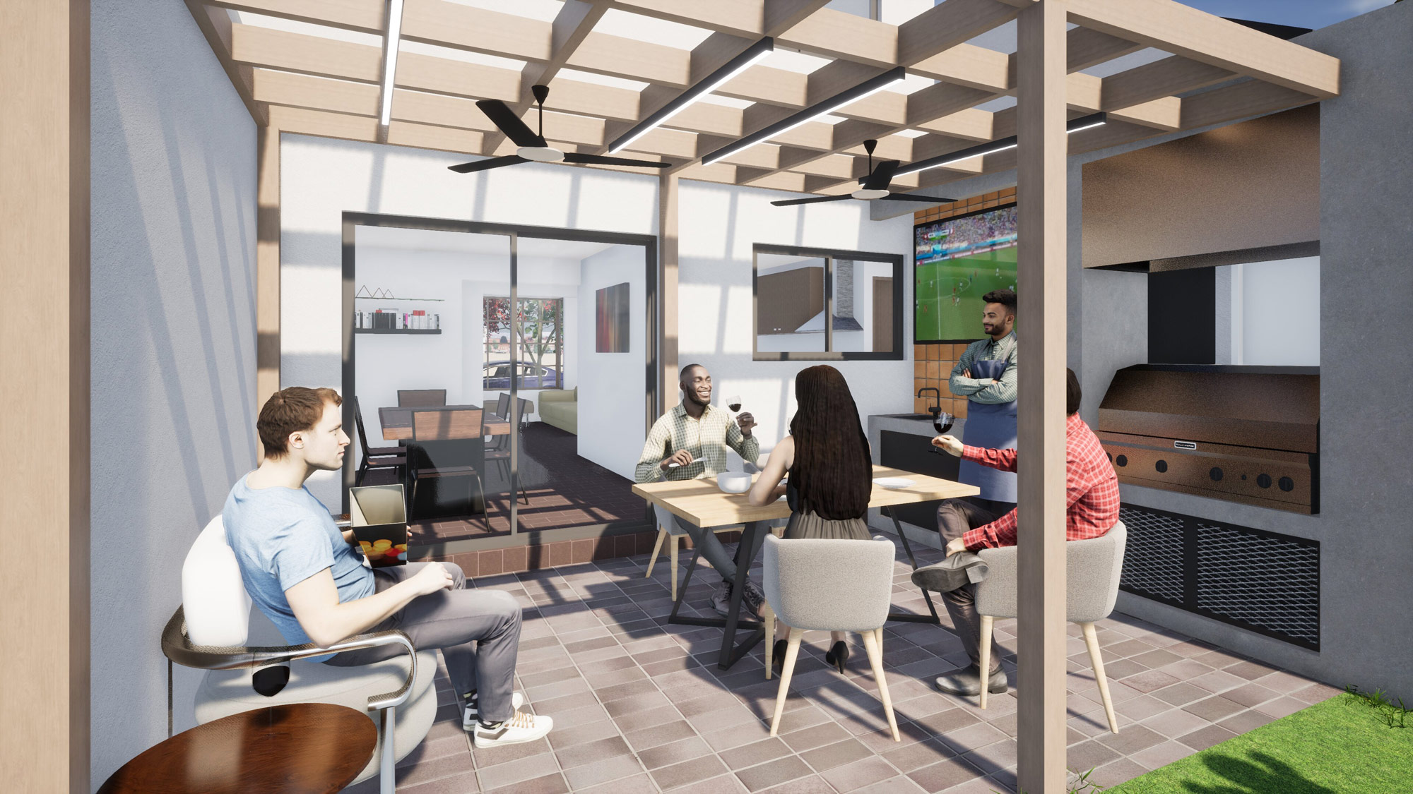 – Townhouse ground floor extension + outdoor pergola structure with BBQ area