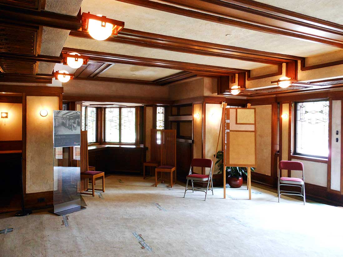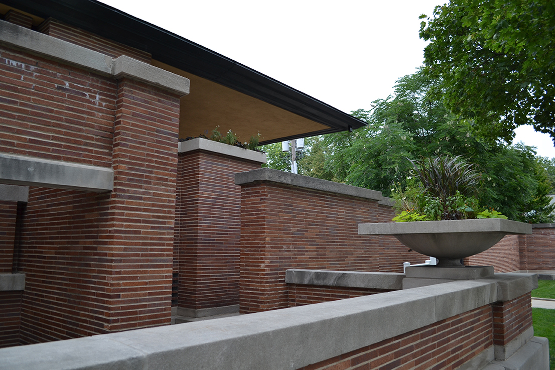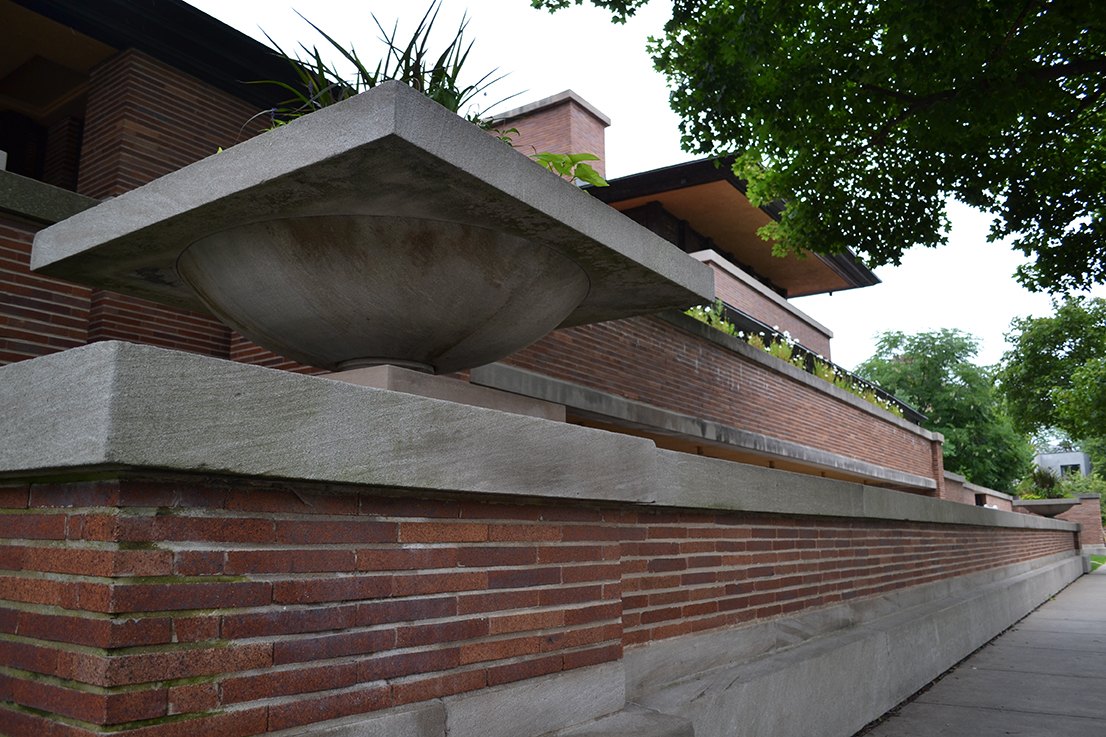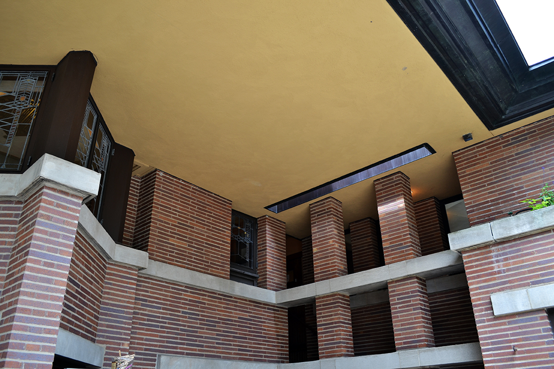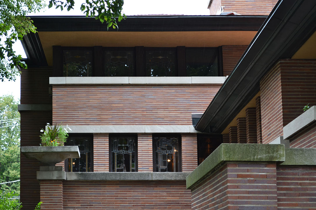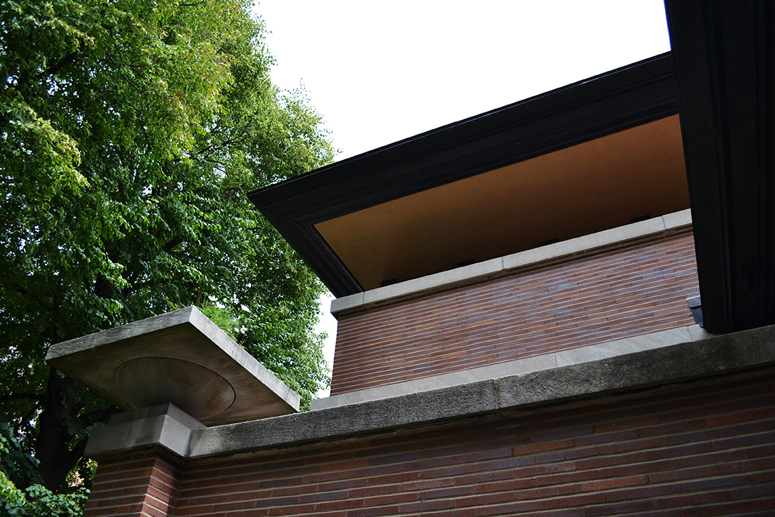 Otro elemento sobresaliente de la arquitectura de Wright es el trabajo de los ornamentos y detalles. El edificio da la posibilidad de apreciar los detalles en diferentes escalas, desde el exterior, en el trabajo de la mampostería, el ladrillo, lucarnas y maceteros, hacia el interior con el meticuloso diseño de las mamparas y vidrieras, con los característicos diseños geométricos y colores de Wright. Hay un importante trabajo en el diseño del mobiliario y la luminaria, que dialoga perfectamente con la estética y el estilo de la casa. Wright trabajó junto a George Mann Niedecken en el diseño de los detalles interiores.