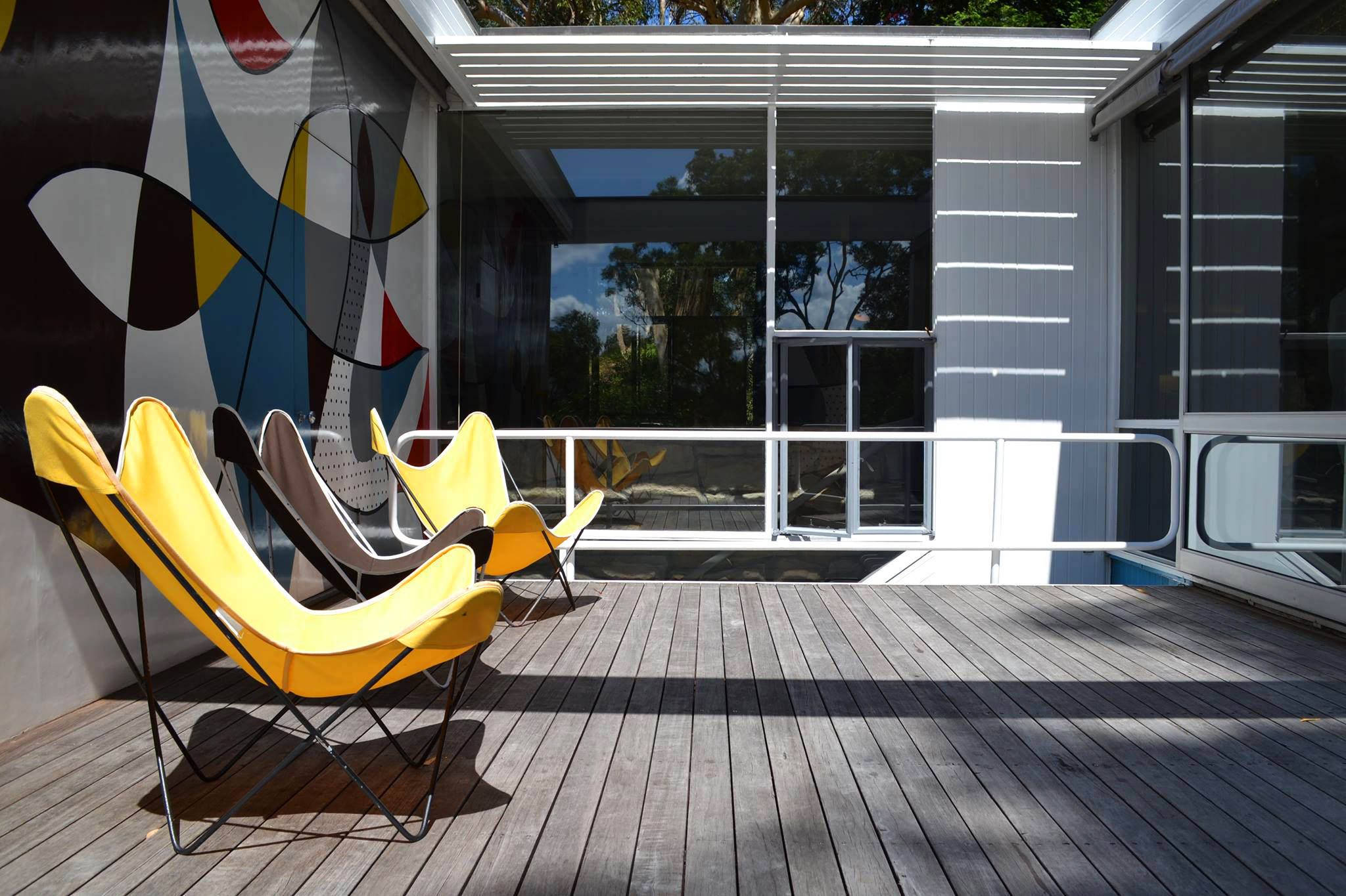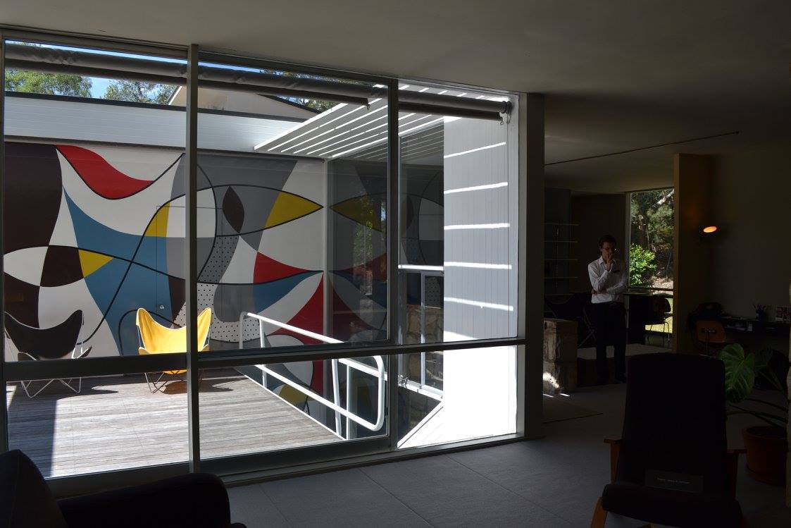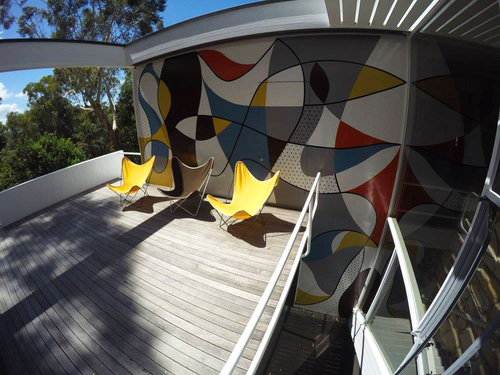 El colorido mural de la terraza interior, al más puro estilo Bauhaus, fue pintado por Harry Seidler.