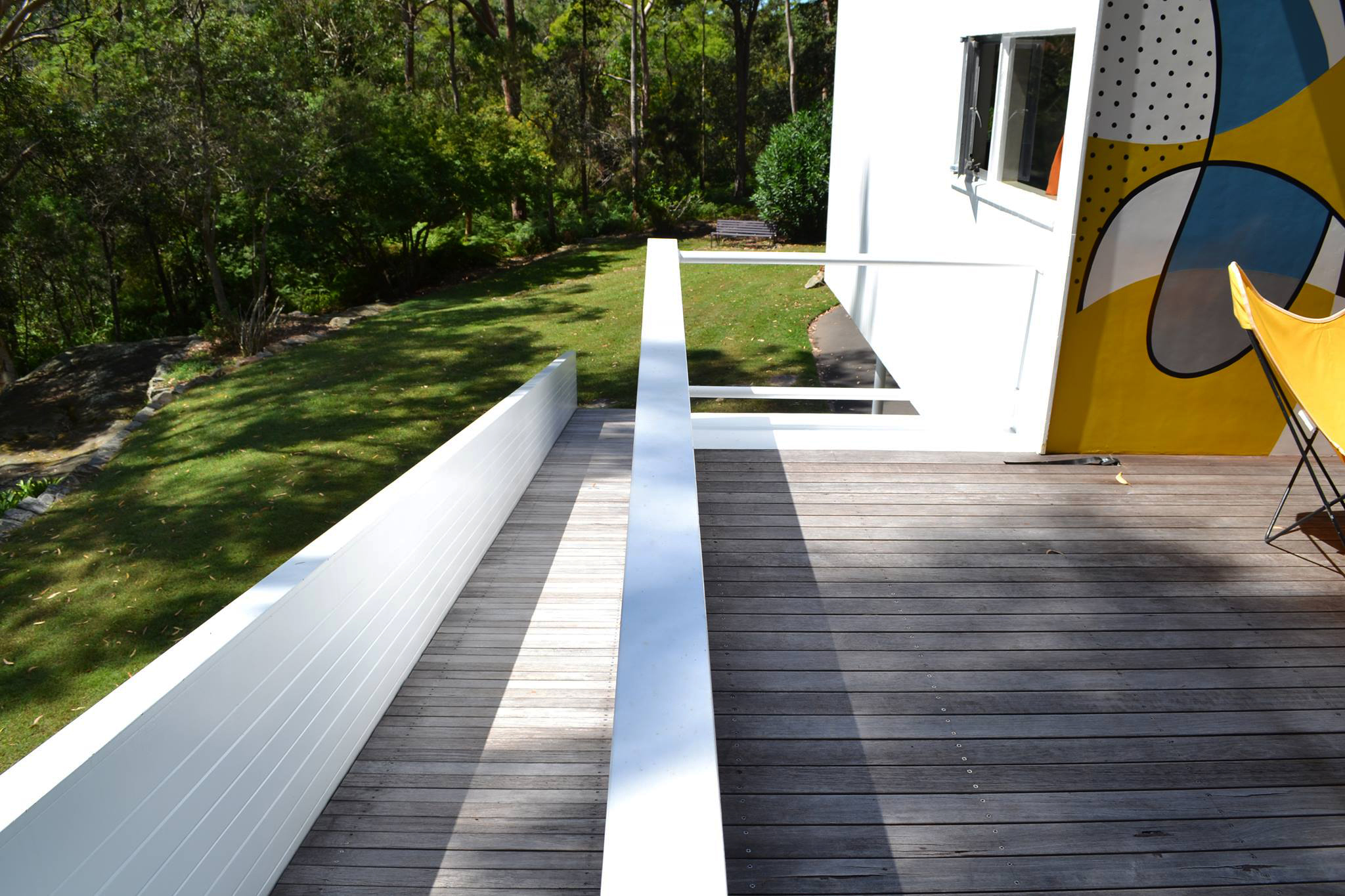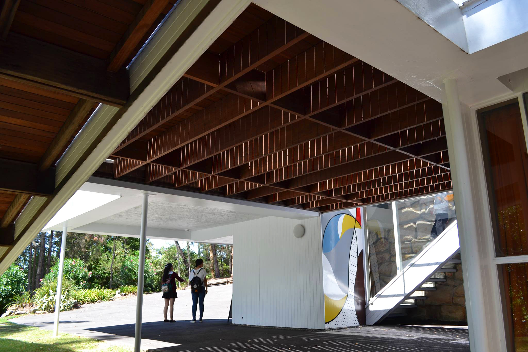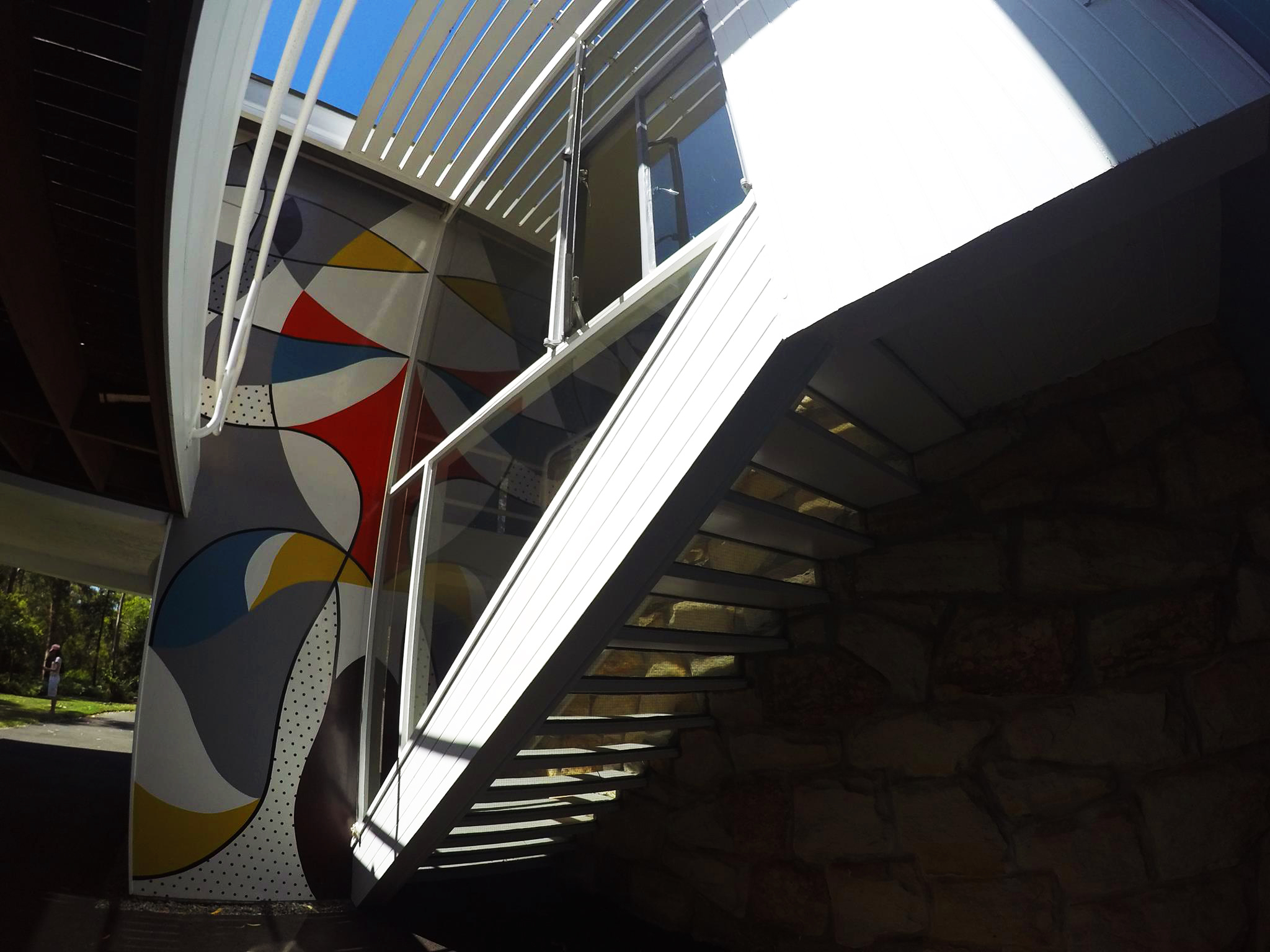El colorido mural de la terraza interior, al más puro estilo Bauhaus, fue pintado por Harry Seidler.